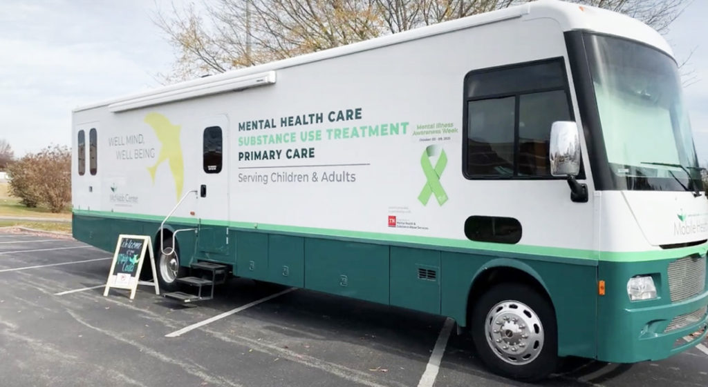 Project Rural Recovery seeks to address infrastructure barriers to access in rural communities with mobile clinics. The units offer two exam spaces, a restroom, a small waiting area, and a lift for accessibility. Providers offer integrated behavioral and physical healthcare for free or no cost to the patient. Through its first two years, Project Rural Recovery has served more than 1,600 Tennesseans.