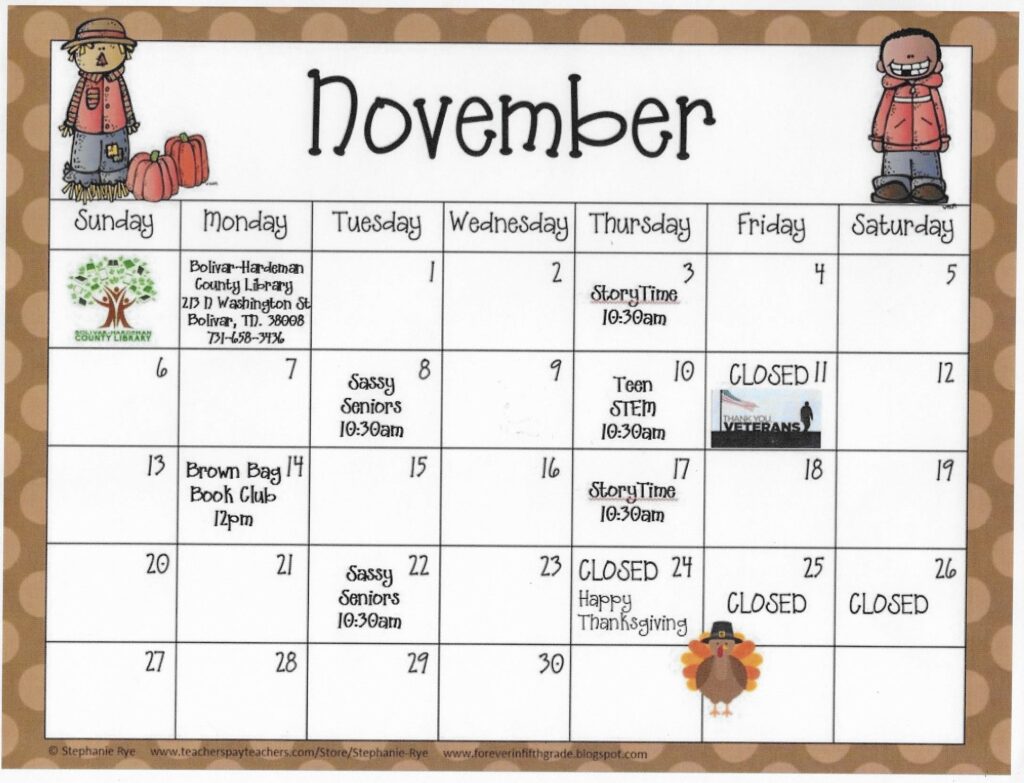 Bolivar-Hardeman County Library November Calendar