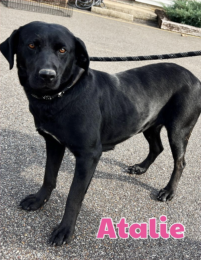 Atalie is overwhelmed at the shelter with all the dogs barking all the time. She can be timid around new people, but warms up quickly when in a home. Atalie seems to like other dogs too. This sweet girl needs a chance at a life outside the shelter. Atalie would love to come home with you! She is one year old and weighs about 61 pounds.