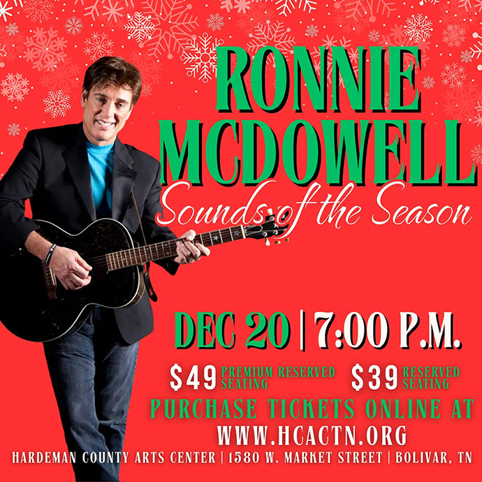 The Hardeman County Arts Council (HCAC) has got the Christmas spirit this season and is presenting country music legend Ronnie McDowell Sounds of the Season on Saturday, December 20, 2025. The event follows the HCAC’s Christmas theatrical production of Believe!, which was performed this past weekend. Ronnie McDowell’s concert is just another one of the HCAC’s lineup of events broadening its entertainment appeal to a variety of audience goers.