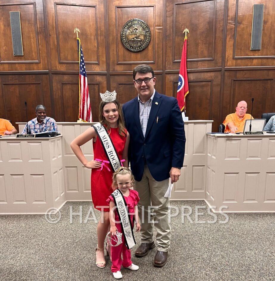 Mayor Pulse recognized Nora Kate and Kynzlee for their outstanding achievements as state title pageant winners. Nora Kate is 3 years old and holds the title of Miss Tennessee Universal Baby. Her sister, Kynzlee Miller, is twelve years old and is Miss Rocky Top Universal Preteen. They are the daughters of Zach and Beth Doyle of Hornsby, TN.