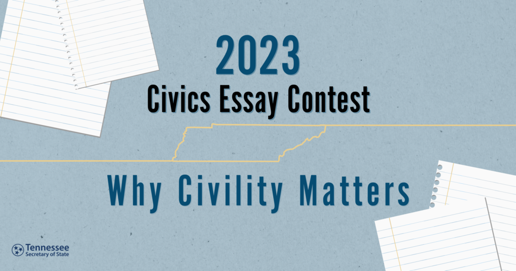 NASHVILLE, Tenn. – Secretary of State Tre Hargett announces the theme for the 2023 Civics Essay Contest for Tennessee students from pre-K to 12th-grade is “Why Civility Matters.”