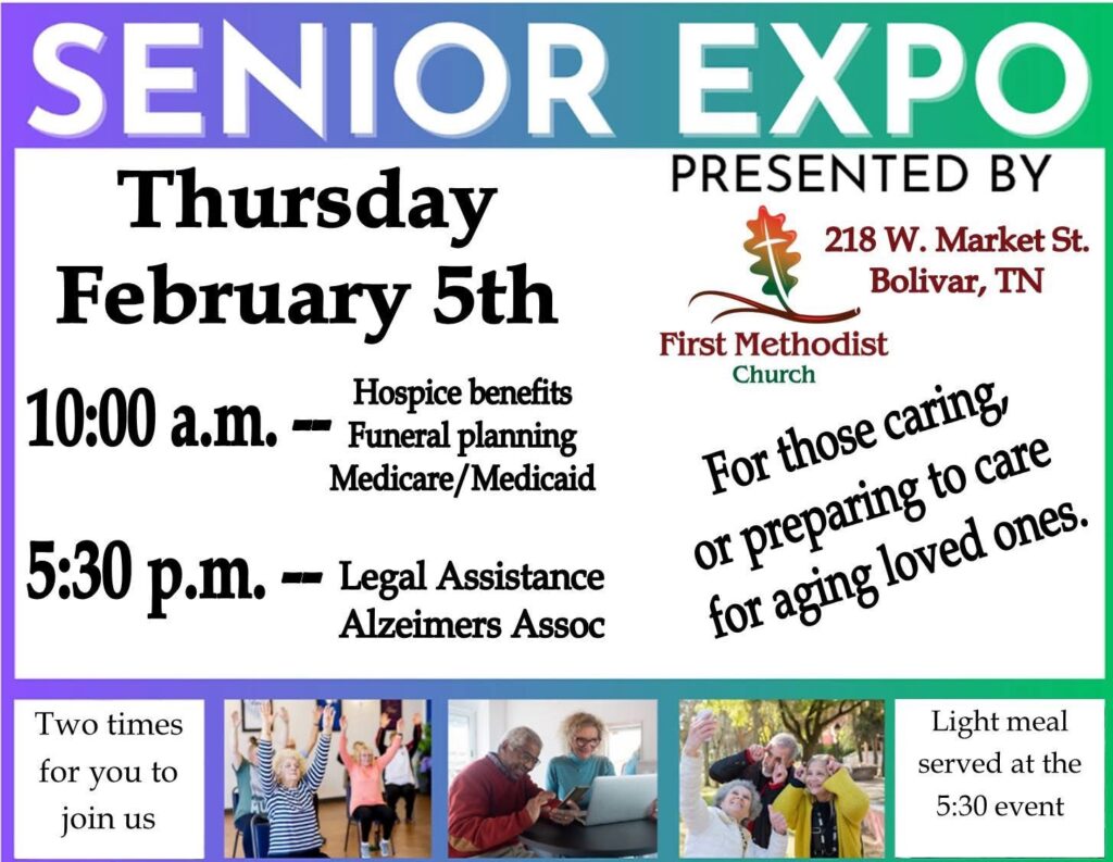 First Methodist Church of Bolivar will present a senior expo on Thursday, February 5, 2026, for those caring or preparing to care for aging loved ones.