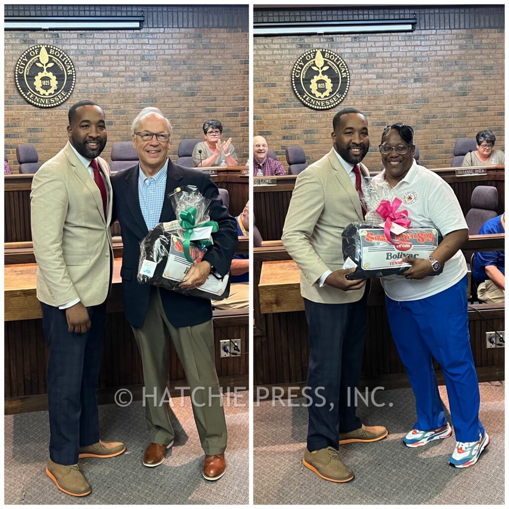 Mayor McTizic thanked them both for their service and said it had been a pleasure working with them. They were each presented with a Challenge Coin and gift to show appreciation for their time serving on the Bolivar City Council.