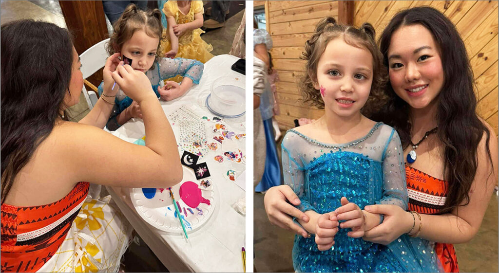 “The table stations consisted of braiding hair, painting nails, and I worked the temporary tattoos and face paint station,” said Chasney. “Watching the little girls come together and have fun and just seeing the smiles we put on their faces was a joy! The girls danced with us, and we took plenty of photos.”