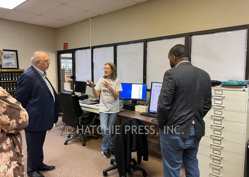 Chuck Sherrill, Former State Librarian and Archivist visited the Bolivar-Hardeman County Library on Monday, April 24, 2023. He toured the library’s history room and shared ideas with library staff and volunteers on how to best preserve the county’s rich history.