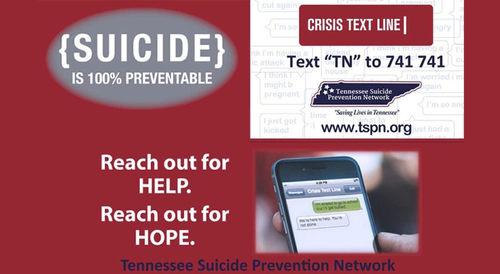 If you or someone you know is considering suicide, please reach out to someone. You may contact the 988 Suicide and Crisis Lifeline by dialing 988, text “TN” to the Crisis Text Line at 741741, or go to 988lifeline.org.