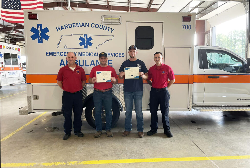 The Hardeman County Ambulance Service (HCAS) recently recognized brothers Jonathan Swarey and Samuel Swarey for their “service of “unwavering dedication to their community” as first responders. Jonathan and Samuel, first responders in the Town of Whiteville, each received a certificate noting their years of service.