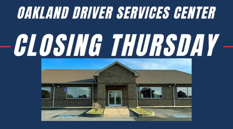 The Department of Safety and Homeland Security’s Oakland Driver Services Center, located at 160 Beau Tisdale Drive, will close for