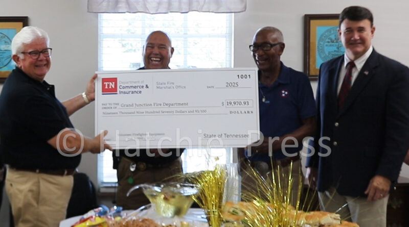 Read MoreHardeman County Mayor Todd Pulse and Representative Johnny Shaw presented Grand Junction Mayor Curtis Lane with a $19,970.33 check for