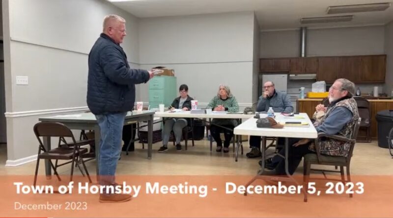 Read MoreThe Town of Hornsby met for its monthly meeting on Tuesday, December 5, 2023. Mayor Curtis Vandiver, City Recorder Melissa