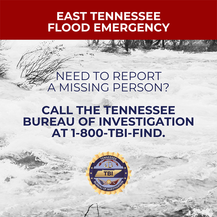 TBI Hotline for Reporting Missing Persons of East Tennessee Flood Emergency
