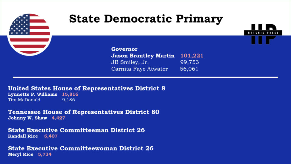 Hardeman County voters had the opportunity to cast ballots in a variety of races during the August 4, 2022 State Primary and County General Election. The results from the State Primary are listed below.