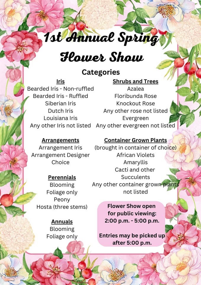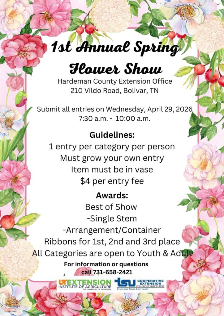 The Hardeman County Extension Office is excited to invite you to its 1st Annual Spring Flower Show! Whether you’re a seasoned gardener or just love flowers, this is a great opportunity to showcase your blooms and creativity.