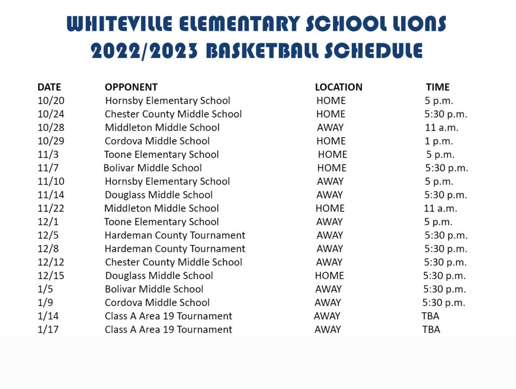 Whiteville Elementary School (WES) released its 2022/2023 basketball schedule and played its first game away against Hornsby Elementary School on Thursday, October 20, 2022. The WES Lions are a district Single A Area 19 team. Read to learn more about the 2022/2023 team.