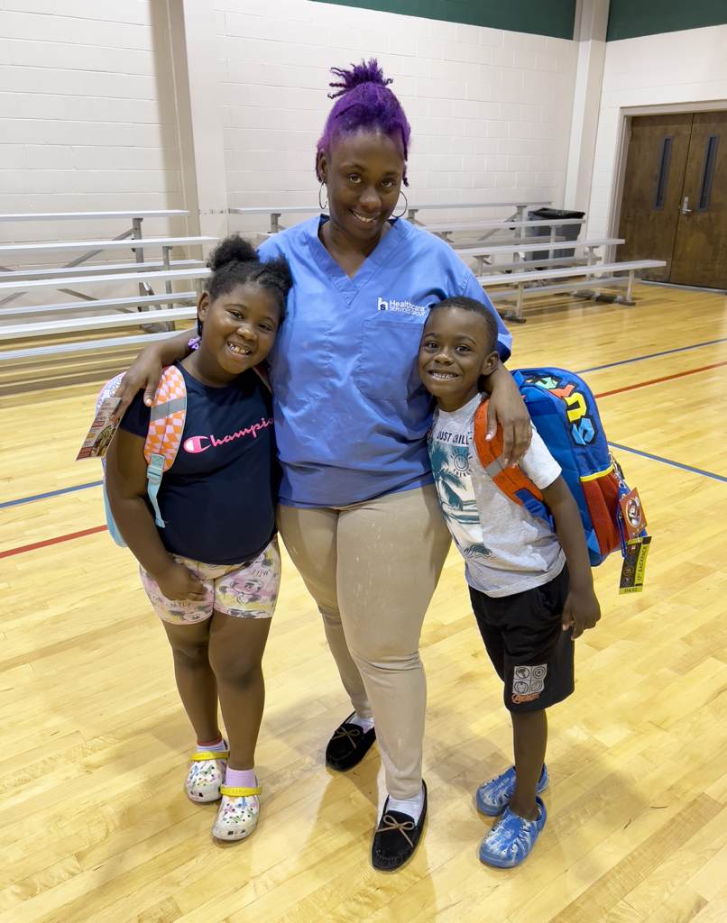 Alesha Lewis brought her kindergarten and sixth grade children to the event. Her youngest chose a Transformer backpack and filled it with supplies.