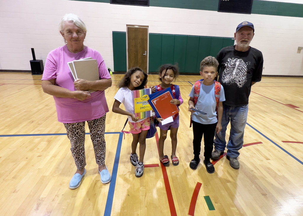 Carolyn Davis and her husband brought their grandchildren who happily stocked up on supplies for school.